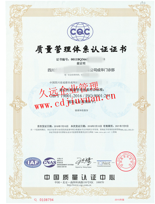 質(zhì)量管理體系認(rèn)證證書