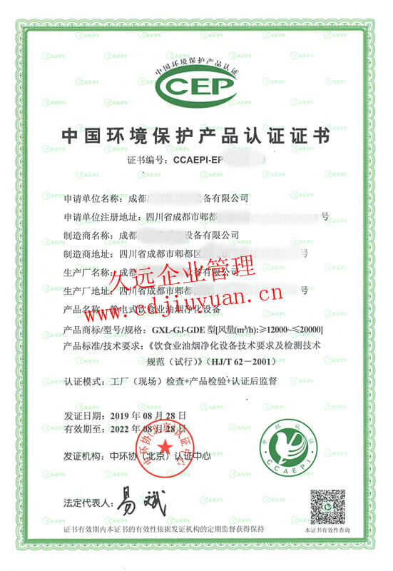 中國(guó)環(huán)保產(chǎn)品認(rèn)證證書